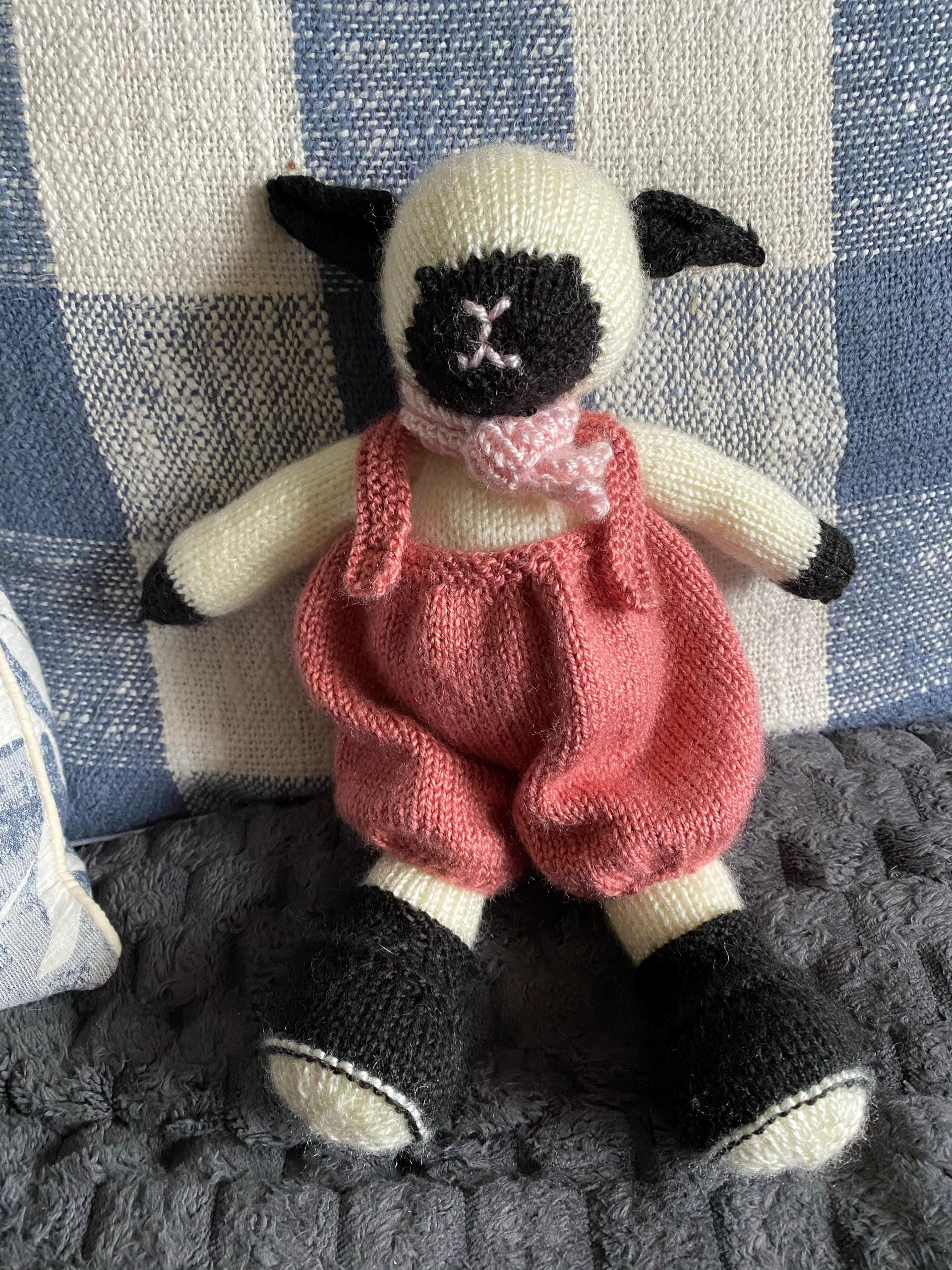 Lamb body and Baggy Dungarees are worked ‘Back & Forth’ on Single Pointed Knitting Needles then the pieces are seamed to finish.