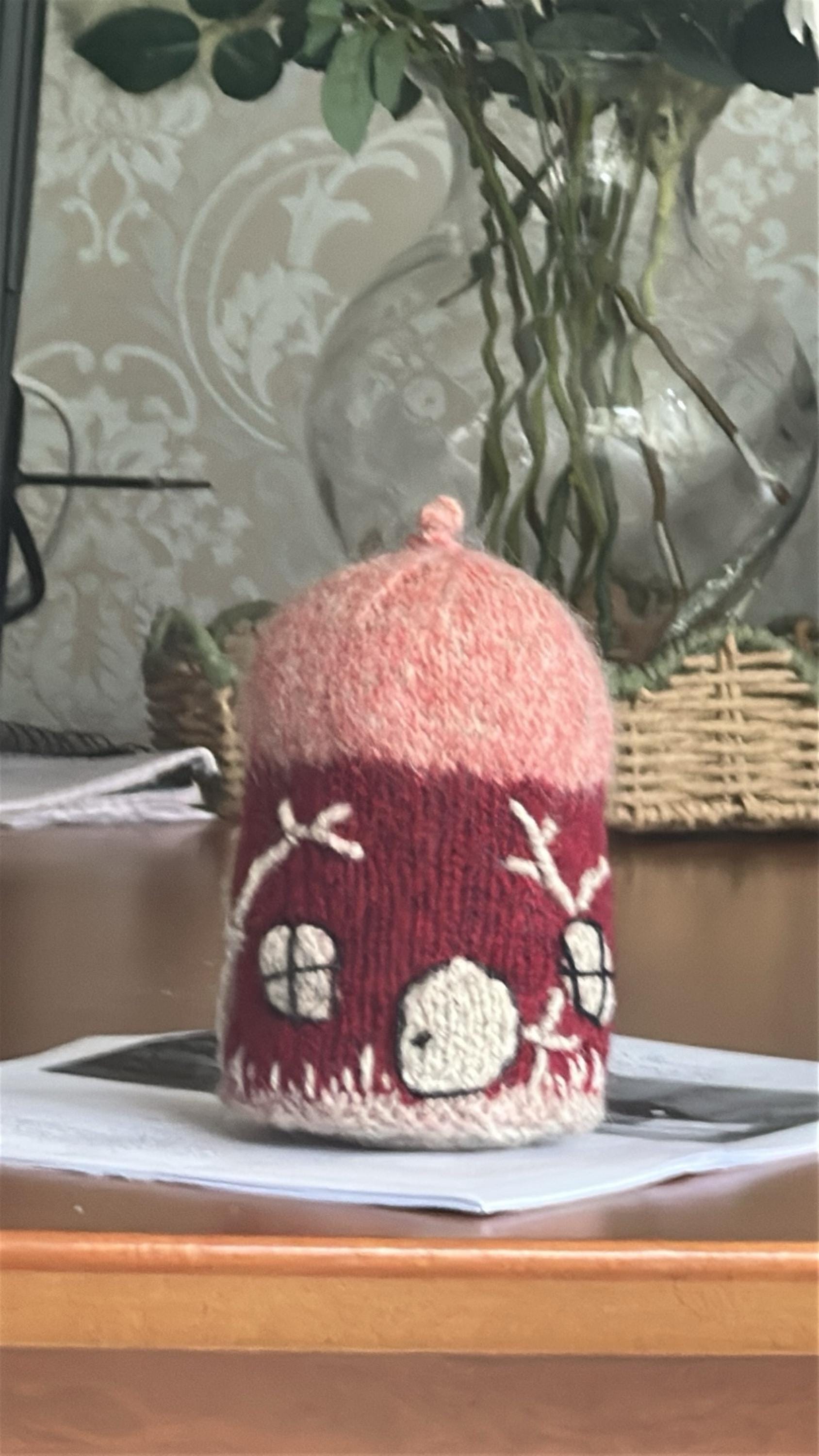 The House is fulled after knitting (quick and easy) which again helps to create the lovely base for the embroidery.
